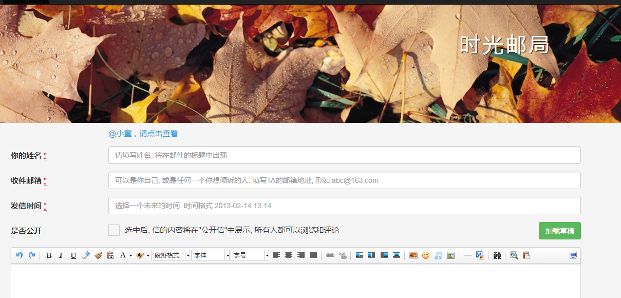 (时光邮局)顾名思义,在这个网址你一封写给未来的自己或他人的信,只要是邮箱的方式,你写下信后,留下收信的时间,到时候就可以通过你留下的邮箱收到这封信了,很有趣,LL也写了一封,嘿嘿,收信时间是20年后,不知道是不是真的可以收到呢。。。。