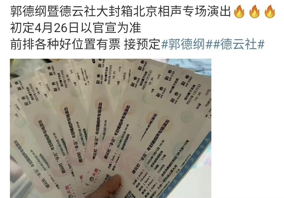 4月5日,网传“辛丑年德云社封箱演出”,不少黄牛票贩开始在网上买票售座。并且还将具体演出时间也公布了出来。